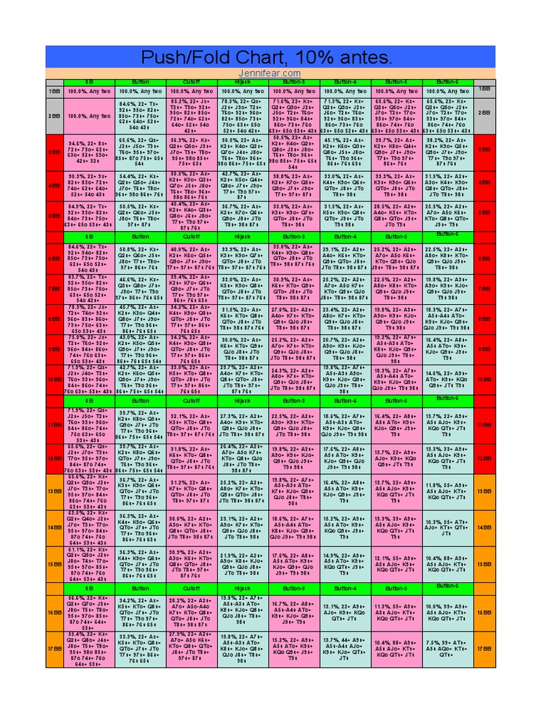 Web what are push/fold charts? Web discover the importance of push/fold poker charts in tournament strategy and find out when you should employ each and how in your poker game. Their data is based on calculations worked out in complex poker programs like icmizer and pokerstove. Push fold charts define the push fold strategy to the slightest detail.