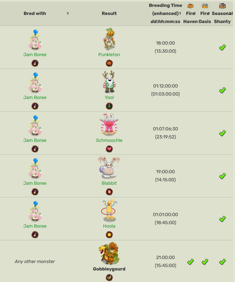 (last updated on 5/29/24) this guide will list out the breeding combos for every monster. Only available during november if breeding off seasonal shanty. Also see our menu for reference materials and vendor recommendations. Finally breeding all the monsters on seasonal shanty and.